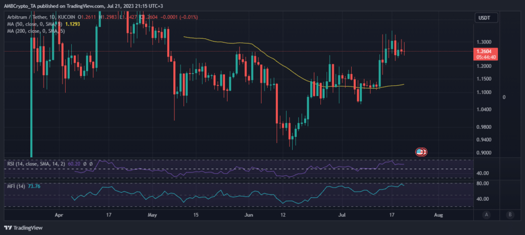ARB traded at $1.25 at the time of writing, representing a 38.64% premium from its lowest price point in June.