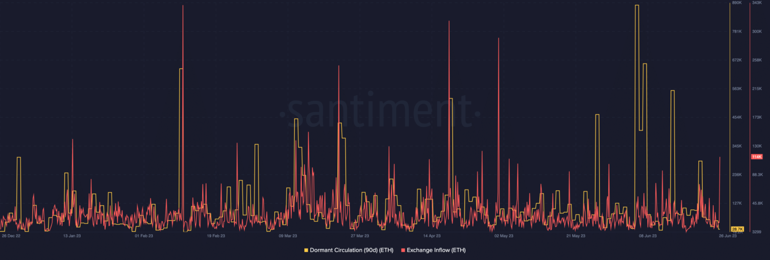 With speculation about the intention behind the activity, ETH could still maintain a price above $1,800. Also, the 90-day dormant circulation, which spiked as of 21 June, had reduced to 28,700 at press time.
