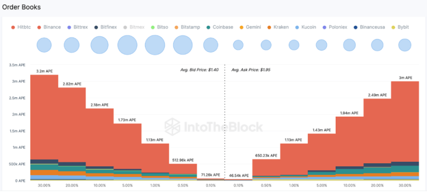 The latest data from the spot market reveals a resolute stance from bullish traders, as orders for more than 11 million APE tokens have beern strategically placed around the current price.