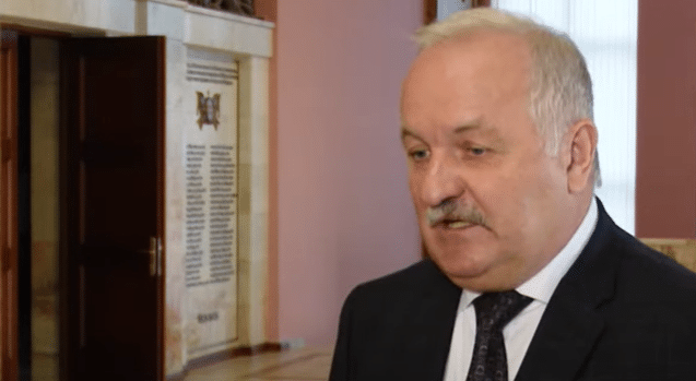 Pavel Kallaur, Chairman of the board of directors of the National Bank of the Republic of Belarus, speaking to reporters in 2023. (Source: Belarus RTR/YouTube)