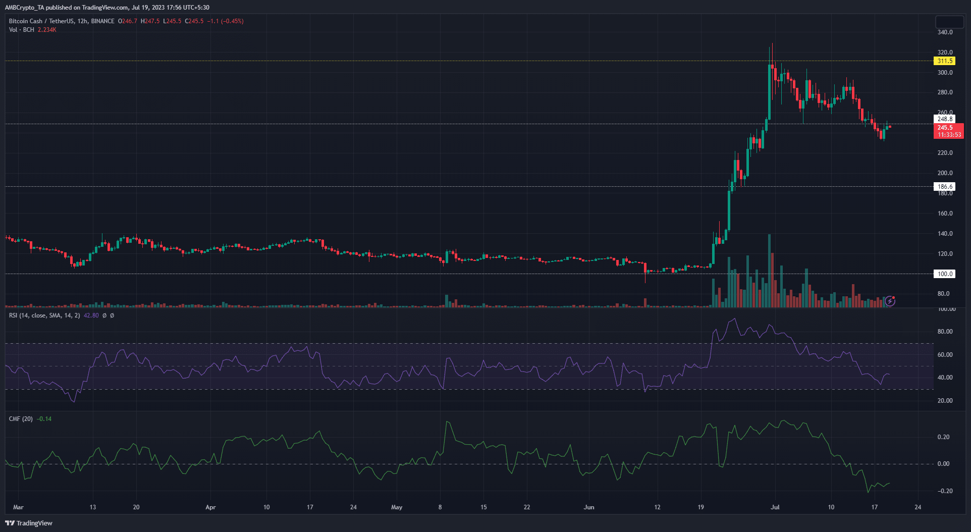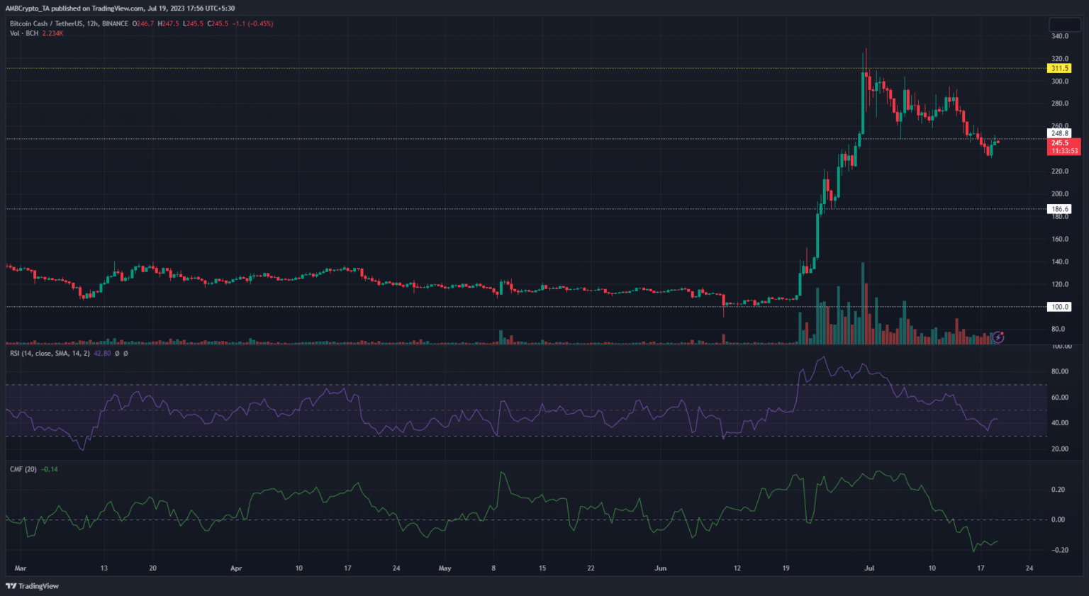 Bitcoin Cash [BCH] went on a remarkable bullish rally in late June that launched it to a 2023-high of $329. However, July brought a change of fortunes for BCH, as bears formed a resistance level at $311 which led to a 30% dip.