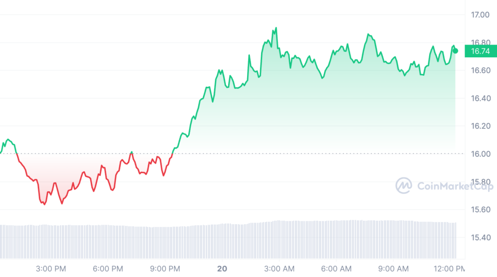 INJ Coin was trading at $16.74 at the time of writing this article.