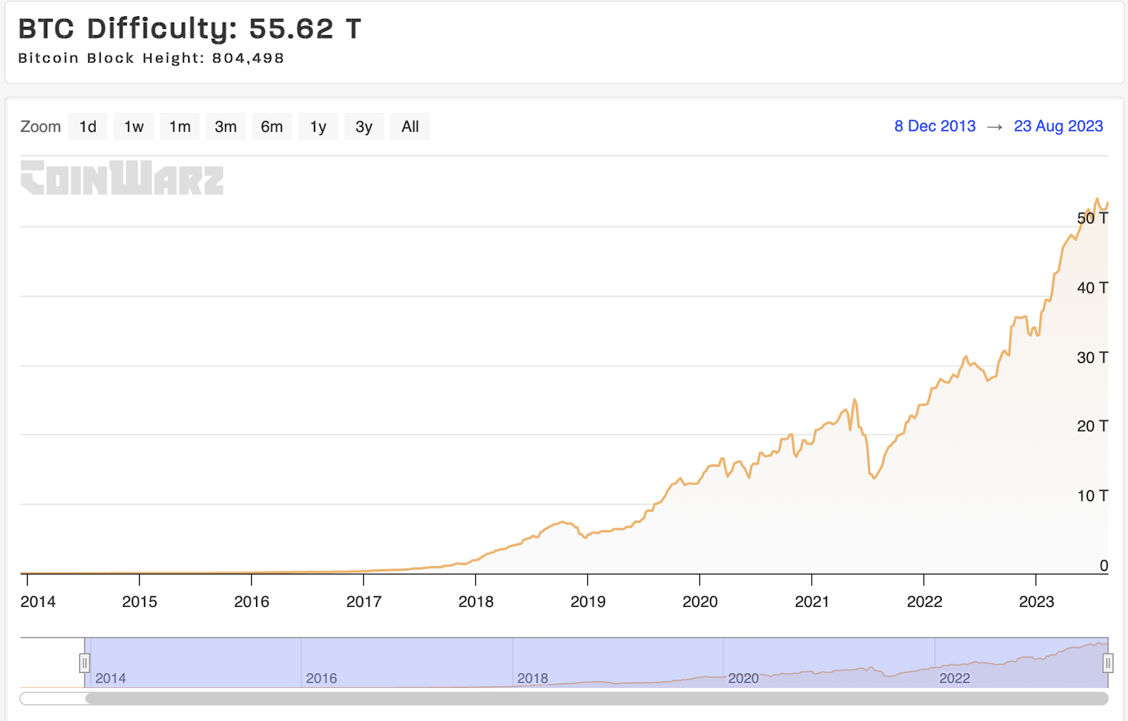 According to data from Coinwarz, the Bitcoin mining difficulty is at 55.62 TH/s after the recent dump in BTC price.