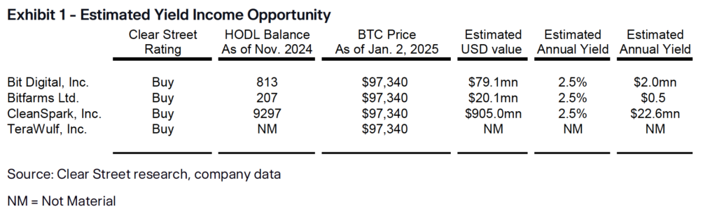 Per Clear Street, these projections rest on each firm’s capacity to scale data center operations, secure or renew power agreements, and navigate final regulatory steps for securities lending. The authors emphasize that clarity from the SEC on in-kind BTC ETF share creation will be pivotal for unlocking yield on HODL balances.