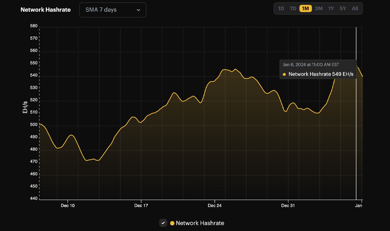 2024 Ushers in Record-Breaking Hashrate for Bitcoin at 549 EH/s