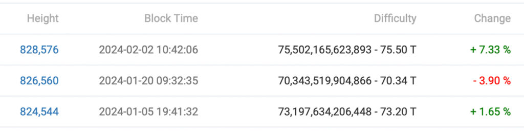 On Friday, Feb. 2, 2024, the Bitcoin network witnessed a significant milestone as its mining complexity metric surged by 7.33% at block height 828,576. This marked the most substantial increase in difficulty for the year thus far. The current level of difficulty stands at 75.50 trillion, reaffirming its status as the most challenging period for bitcoin mining to date.