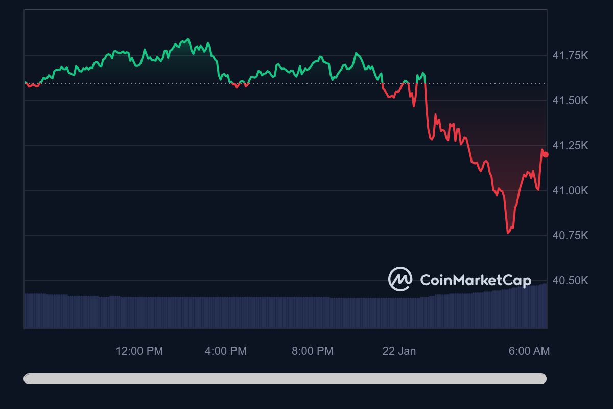 The king coin fell to $40,761 at 5 am UTC on the 22nd of January, AMBCrypto noticed using CoinMarketCap’s data. As traders bought the dip, the price was pulled back up to $41,202 at press time.