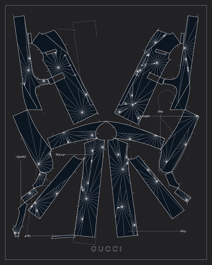 Each artist’s work innovatively delves into the confluence of fashion, art, and technology, encompassing themes from generative textile studies to algorithmic renditions of the iconic Gucci Bamboo 1947 handle. This intertwining of autonomous systems, AI, and fashion signifies a merging of distinct ecosystems – superimposing the fashion industry, which is focused on garment design and manufacturing, onto the realms of generative art and artificial intelligence that utilize algorithms, modeling, and data to mimic human-like intelligence and artistic production.