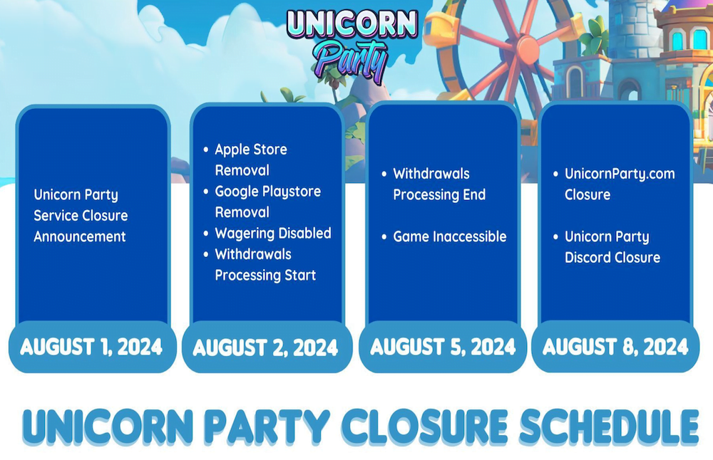 US developer Laguna Games and Crypto Unicorns DAO have announced in unison that they are going to shutdown the Unicorn Party. The Unicorn Party was a series of games covering the intellectual property of the Crypto Unicorns, with the goal of wider audience reach through simpler gameplay and reward systems.