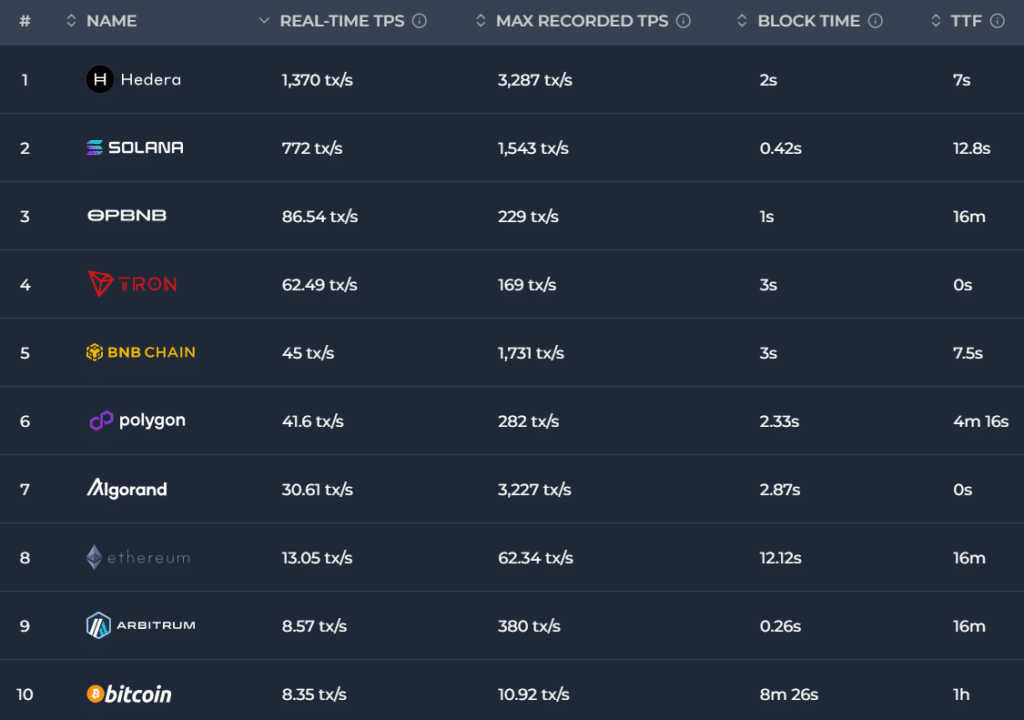 Take Solana (SOL) as another example, boasting a current real-time TPS of 772, according to Chainspect data. Despite facing its 10th major outage in February 2023, the network has demonstrated high stability since then.