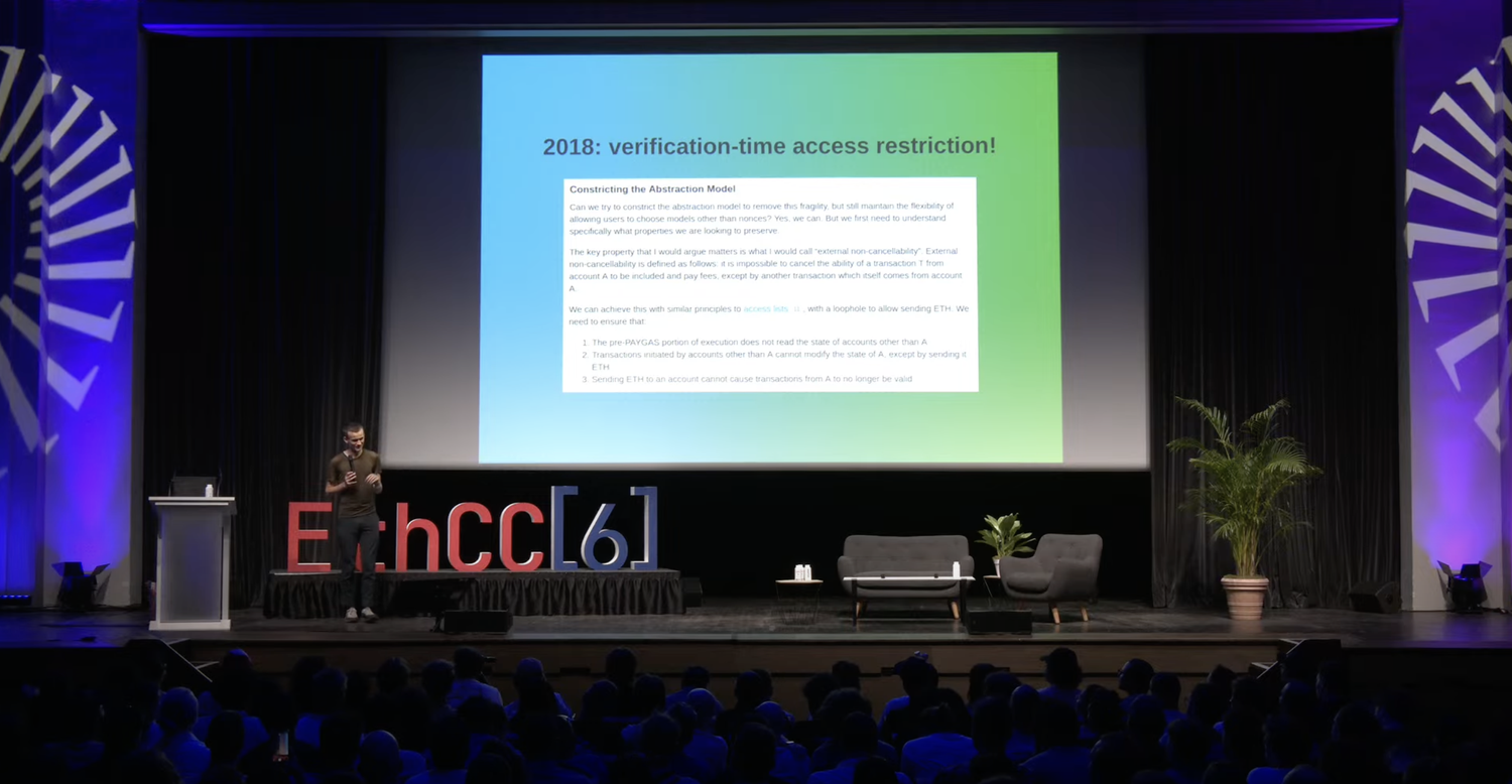 Yesterday, he discussed the idea of switching from Externally Owned Wallets, to smart contract-based wallets.