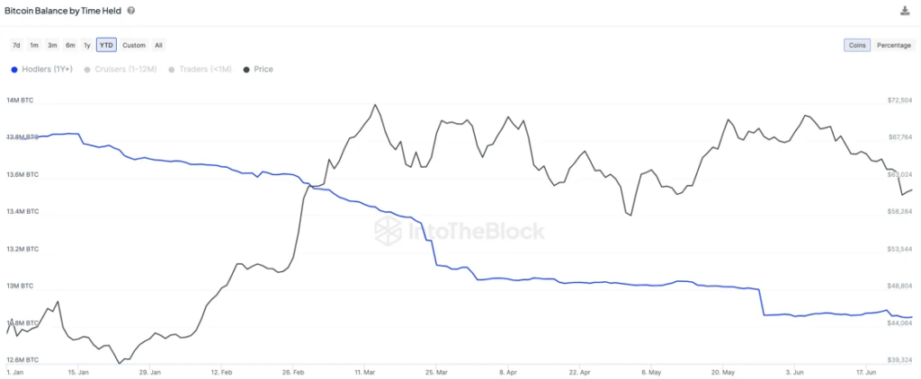 Bitcoin’s price fell by 12.8% following its fourth halving on April 20, and an anticipated price surge caused by a supply shock did not materialize. IntoTheBlock analysts shared that this is likely due to long-term holders taking profits in 2024.
