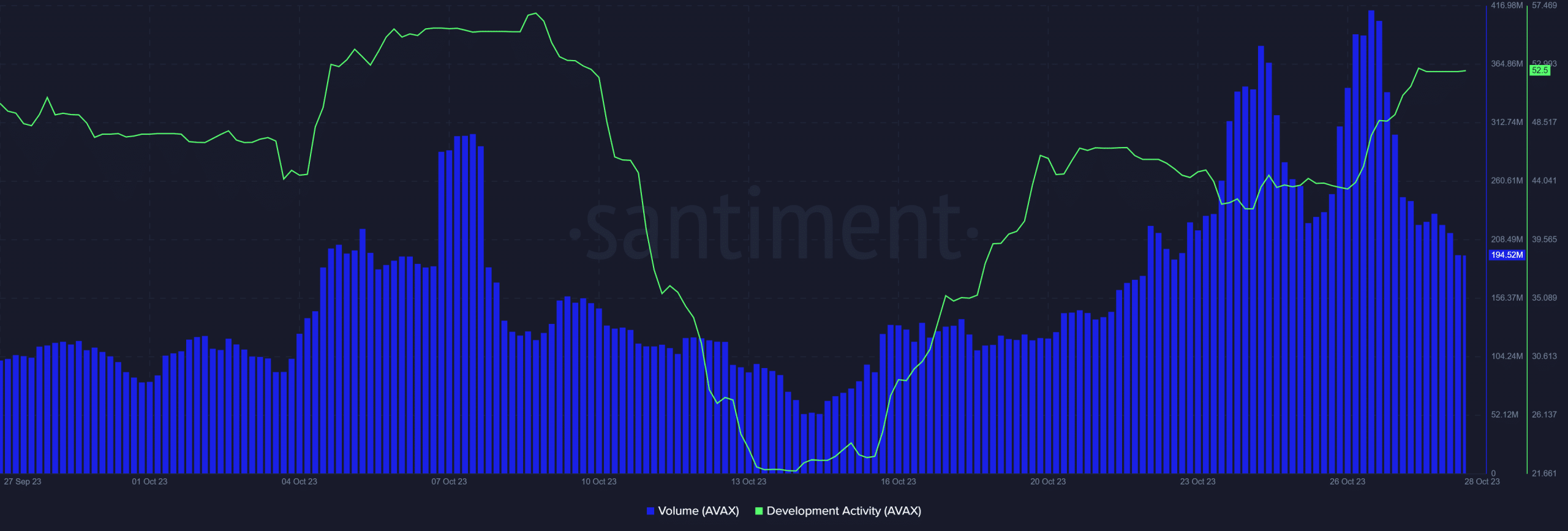 As for Avalanche’s on-chain data, the surge in network activity was observed in the form of a volume surge. This was particularly the case in the last two weeks since mid-October.