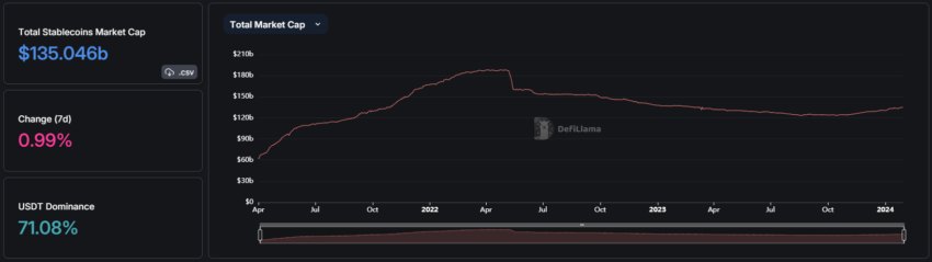 Stablecoins are often pegged 1-1 to fiat currencies and backed by cash or bond reserves. They comprise a substantial part of the $1.7 trillion digital asset market. The stablecoin market cap is currently over $135 billion across all chains.