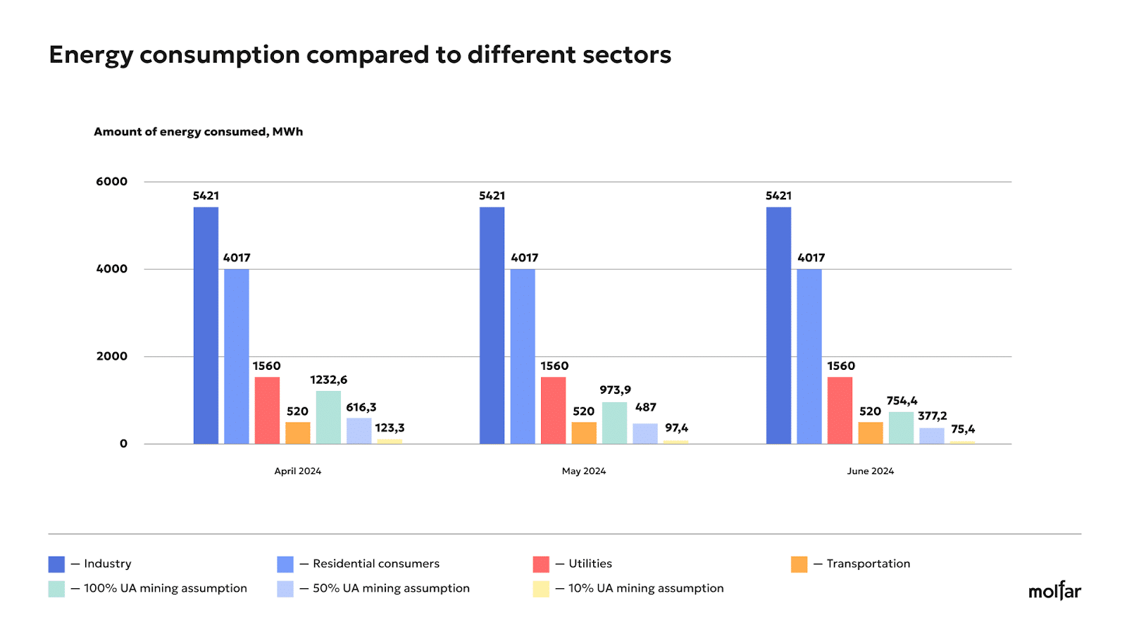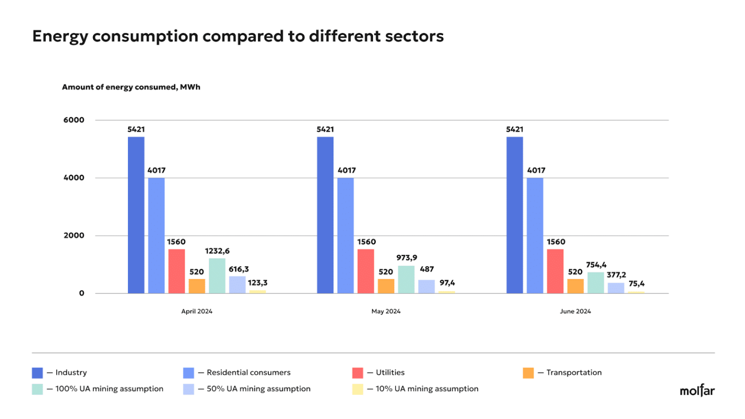 Thus, miners are harming the country since the estimated electricity consumption by miners is comparable to the consumption of, for example, 770 hospitals — infrastructure vital for the country during a wartime.