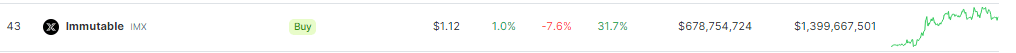 IMX market cap slightly above $1.4 billion today. Chart: TradingView.com