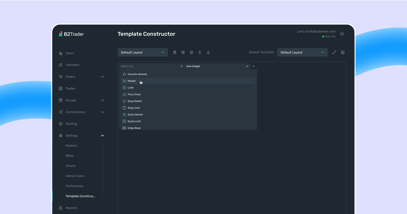 Admins can now enjoy a more flexible and convenient workspace with customisable layout templates. Brokers can personalise templates for workspace layouts, including a default setting that activates when a trader first uses the Trading terminal. Admins can save up to 10 custom setups and import or export their template settings. This feature is accessible in the Settings section on the left menu.