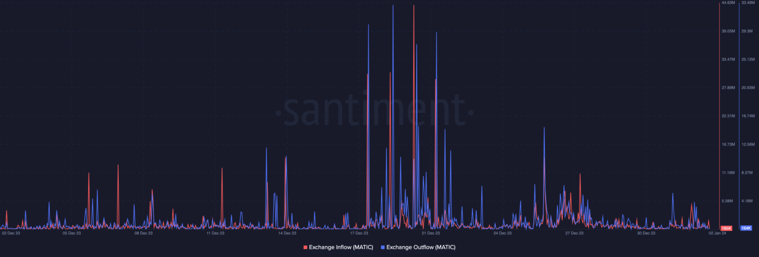 At press time, the exchange inflow was 165,000 while the outflow was 164,000. Such closeness depicts a heated context between the accumulation of MATIC and selling pressure. For the token to get a clear road to a bullish path, the exchange outflow has to outpace the inflow.
