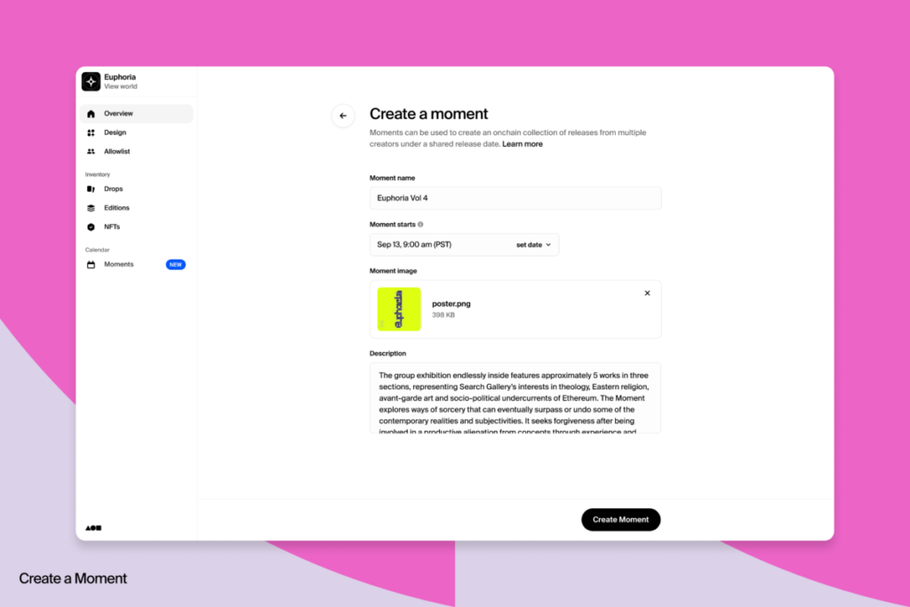 As for collectors, Moments acts as a signal that cuts through the clutter and noise that can often be found in Web3, whether that’s an onslaught of notifications from X, Discord, Telegram, etc. or the sheer volume of constant releases.