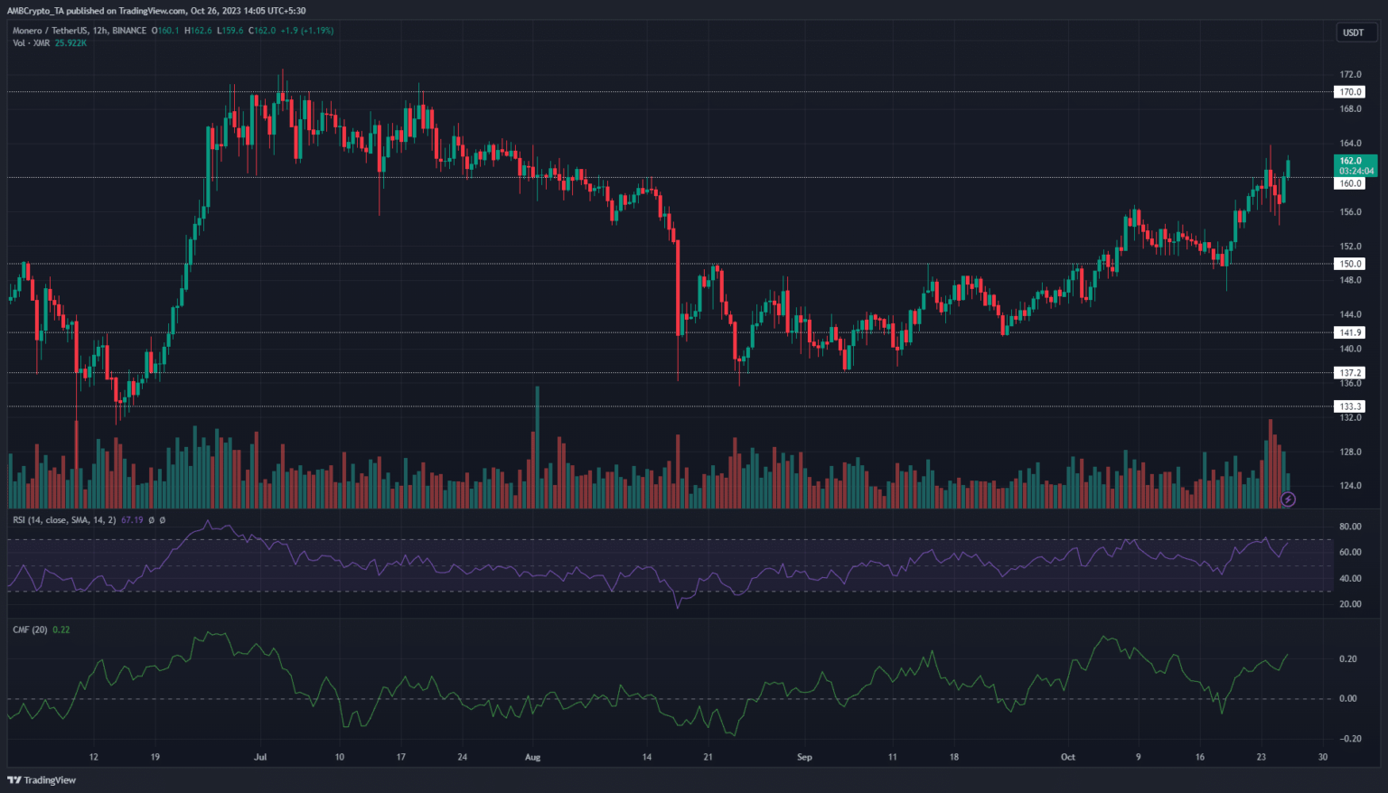 Likewise, the funding rates remained largely positive. Also, the strong demand for XMR was evident with the spot CVD maintaining its uptrend. Overall, the signals pointed to additional gains with XMR poised to take its bullish run to $170 in the short term.