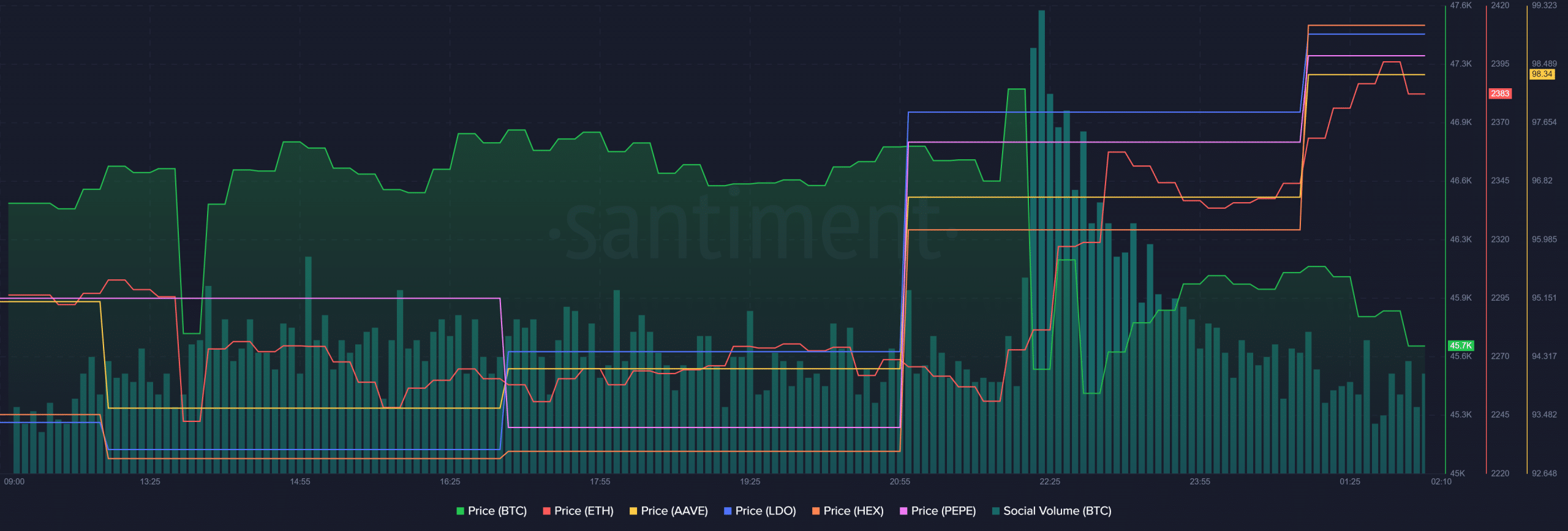 According to Santiment’s chart, Pepe maintained its value. At the same time, BTC declined, and Ethereum and Lido were among the other altcoins that benefited from the overall rise.