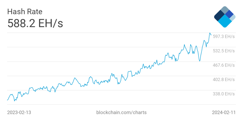 Total network hashrate growing ahead of April’s halving