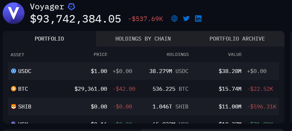 According to the Arkham Intelligence dashboard, the bankrupt lender holds cryptocurrencies worth $93.7 million. A breakdown of the assets showed it currently holds 1.046 trillion SHIB tokens valued at over $11 million. The firm also holds over 5k ETH, worth over $10 million. Other crypto holdings of the company include its native VGX token, Bitcoin, and Shiba Inu