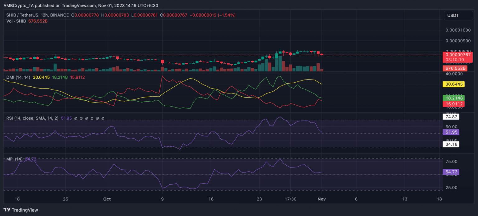 At press time, although SHIB’s key momentum indicators rested above their respective neutral lines, they trended downward. This suggested that selling pressure was starting to gain traction.