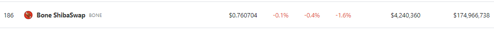 Consequently, nearly all the gains achieved during the initial bullish period in 2023 have been completely reversed. Presently, CoinGecko reports that BONE is valued at $0.760704. Within the last 24 hours, it has witnessed a modest rally of 0.4%, while over the past seven days, it has seen a decline of 1.6%.
