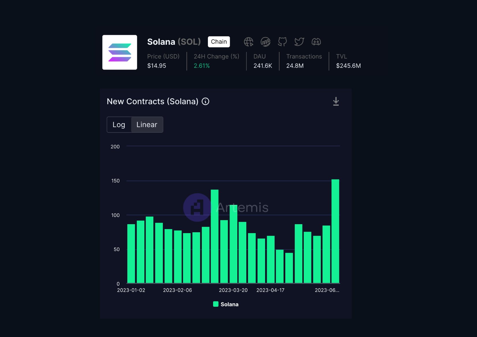 According to the latest data from Artemis, new contracts deployed to Solana have reached a year-to-date high.