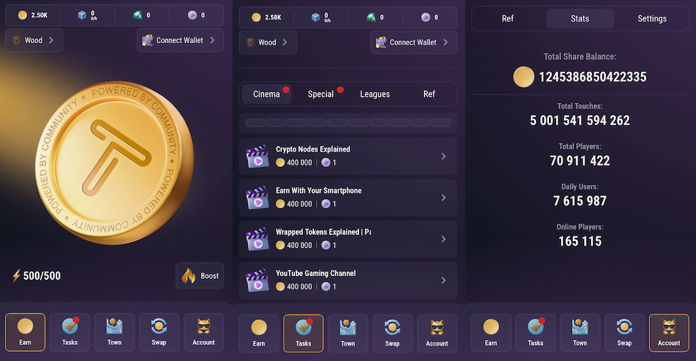 Built on the TON blockchain, TapSwap has rapidly risen in the mobile gaming sphere. In TapSwap, players earn Shares by tapping the screen, building league rankings by outperforming the others in TapSwap. Boosts are unlocked and these tasks are to be completed for maximum Share earnings.