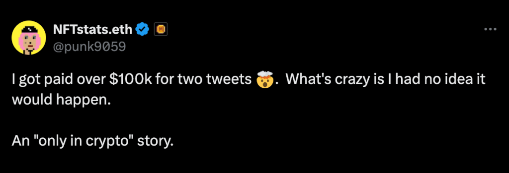 The less familiar ‘for every view your tweet gets, you get some crypto’ method.