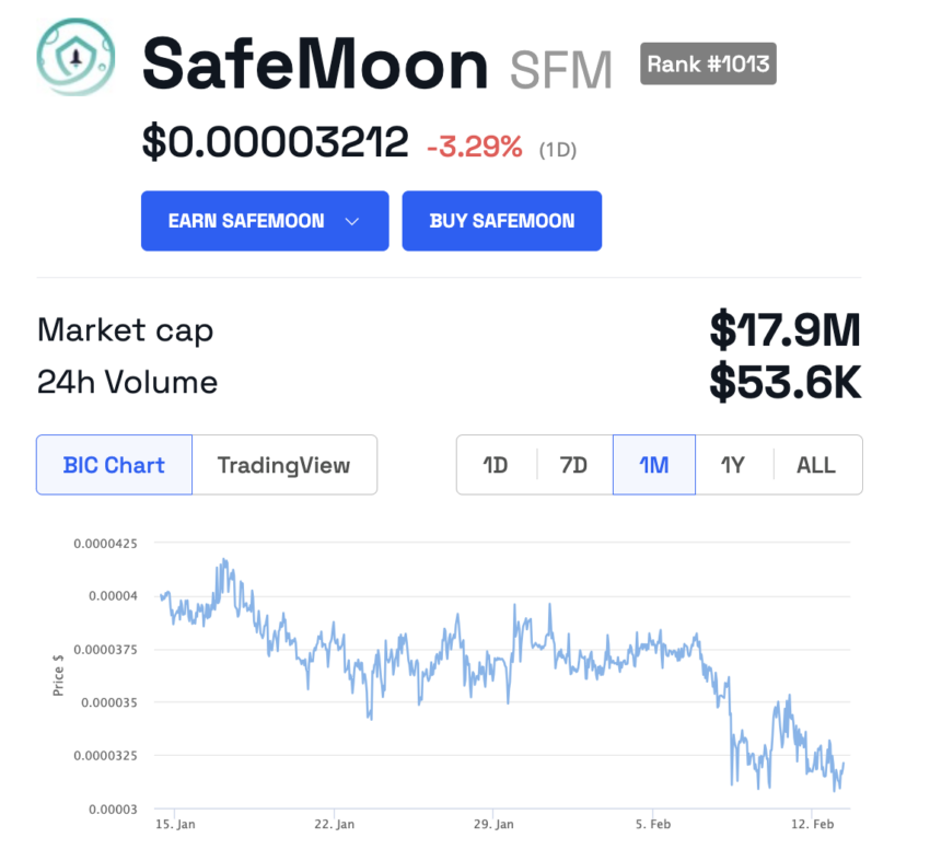 SafeMoon (SFM) Price Chart | Source: BeInCrypto