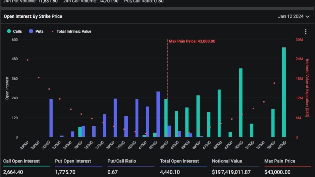 The put-to-call ratio, considered a measure of overall market sentiment, stands at 0.67 for the January 12 options contracts, indicating a more cautious approach among traders.