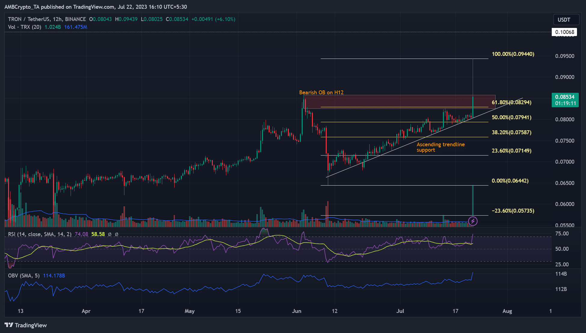- Tron graced its 2022 highs of $0.093.