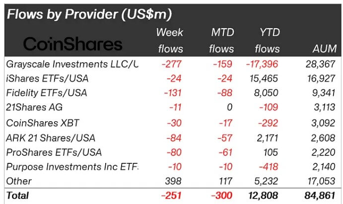 According to the report, the market saw an outflow totaling $251 million, with the Newborn Nine spot Bitcoin ETFs accounting for over 60%, or $156 million, of these flows.