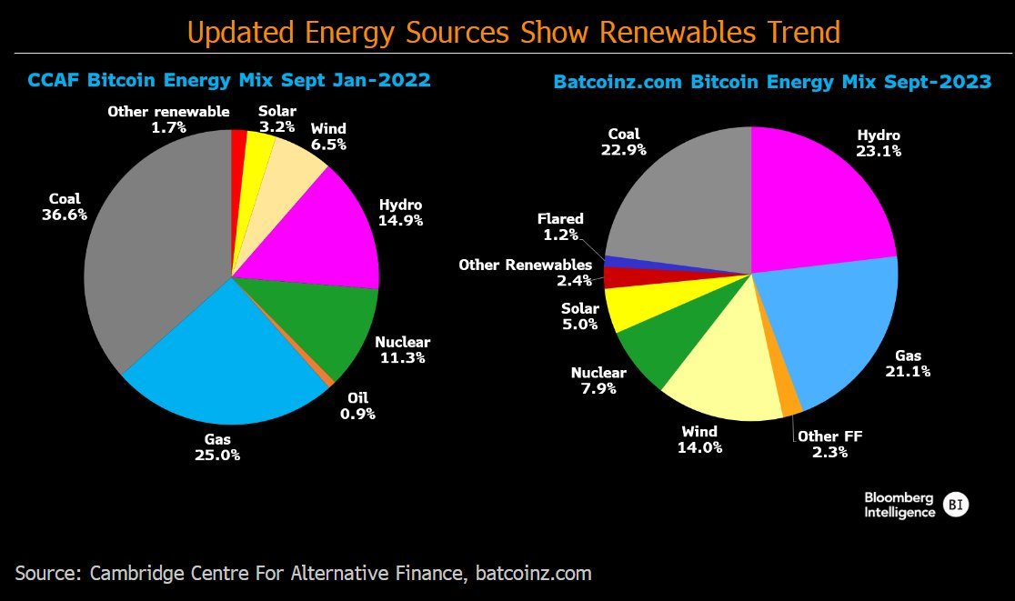 Bitcoin is often criticized for its high energy consumption and carbon footprint. But a new report by Bloomberg cryptocurrency market analyst Jamie Coutts challenges this narrative and shows that Bitcoin mining is becoming more environmentally friendly.